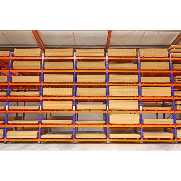 Daha çok boyutları büyük ürünlerin (Tabaka Sunta, uzun paletli ürünler vb.) istiflemesinde tercih edilmektedir. Sistem çift derinlik olduğu için, istifleme makinelerinde teleskopik taşıyıcıya ihtiyaç duyacaktır.
